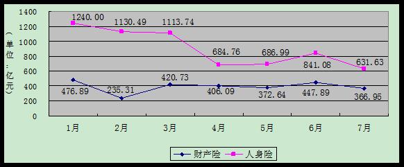 2011年7月全国产寿险保费收入趋势