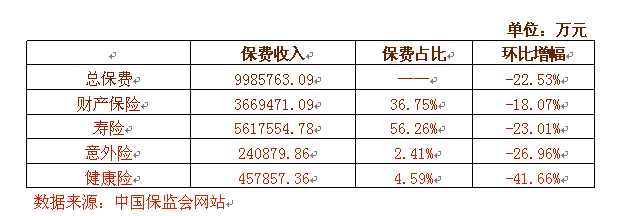 2011年7月全国各险种保费收入表