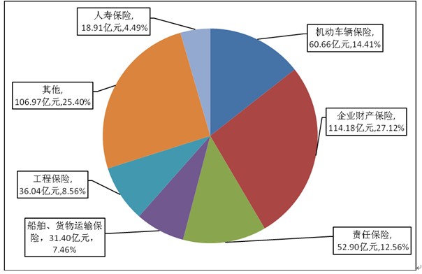2012年,全国保险经纪机构实现保费收入421.06亿元。其中,实现财产险保费收入340.24亿元;实现人身险保费收入64.99亿元;实现再保险业务类保费收入15.83亿元。