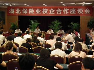 为贯彻落实湖北保监局年初提出的“充分利用高校资源、搭建校企合作平台”的工作要求, 6月24日,湖北省保险学会举办“湖北保险业校企合作座谈会”。参加座谈会的有43家产、寿省级分公司负责人和武汉大学、中南财经政法大学、中南民族大学、湖北工业大学、湖北经济学院、江汉大学等6所高校院系负责人,湖北保监局副局长姚庆海同志、相关处室负责人及省保险中介协会负责人出席了座谈会。