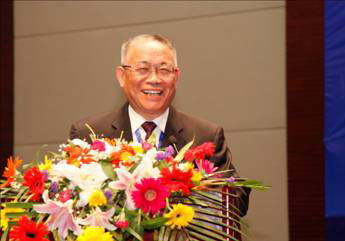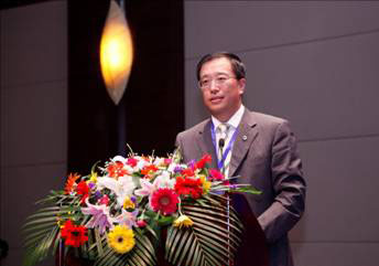 图为国务院研究室社会司原司长朱幼棣就保险业参与医疗保障体系建设的新形势演讲