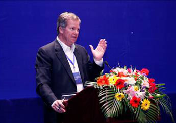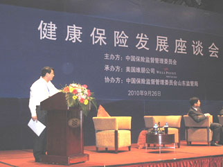 图为维朋(中国)总裁杜克强演讲《中国新兴的商业健康保险市场》
