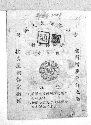 在国内,则广泛开展抗美援朝、保家卫国活动。作为新成立的中国人民保险公司,自创立一开始,就与共和国血脉相连。从发展保险做起,并以实际行动在保险单上做宣传,积极支援抗美援朝战争前线,为国内经济建设做好安全保障。